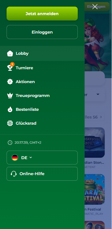 In unserem Verde Casino Test haben wir natürlich auch die Benutzerfreundlichkeit und die Navigation der Webseite eingehend geprüft. Die Webseite ist übersichtlich aufgebaut und intuitiv bedienbar. Der hellgrüne Schriftzug und das frische Design erinnern an irische Glückssymbole wie das Kleeblatt oder den Leprechaun. Im Banner im oberen Teil der Webseite zeigen sich magische Wesen in einer sanften, grünen Landschaft, ganz dem Namen der Plattform entsprechend. Der helle Hintergrund im Hauptfenster sorgt dafür, dass die Augen auch bei längerem Spielen geschont werden.